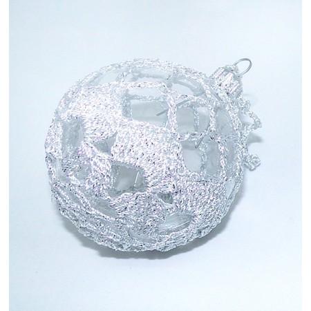 Glob de sticla cu model crosetat manual 7cm – argintiu